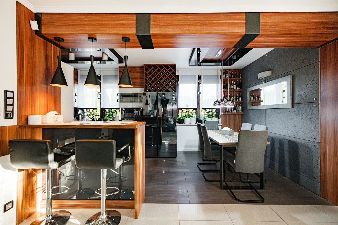 - salon z wydzieloną otwartą kuchnią i wyjściem na taras