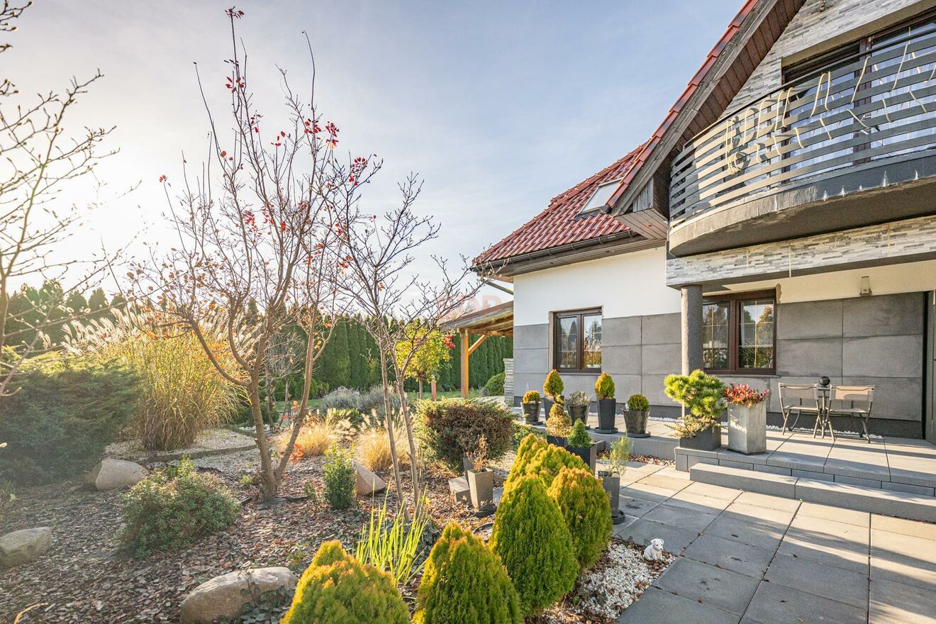 Dom wolnostojący na działce o powierzchni 1450 m2, położony wśród zieleni, z doskonałym dojazdem do Wrocławia.